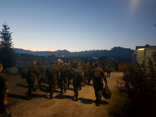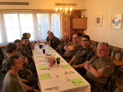 Am Abend trafen wir im Rekrutierungszentrum Sumiswald ein. Nach dem Znacht liessen wir den Tag in geselliger Atmosphäre bei gemeinsamen Gesprächen und Getränken ausklingen. Der Samstag startete erneut kühl. Bei aufgehender Sonne und Bodennebel setzten wir unsere reizvolle Fahrt durch das Emmental fort.