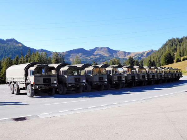 Die Reise ging schnell zu Ende und wir befürchten, dass es wohl die letzte Ausfahrt mit diesen Fahrzeugen war. Die NLG von Iveco sind bereits in grösser Stückzahl abgeliefert und immer mehr und mehr 10DM finden ihren Weg in die Liquidation, nachdem der kleine Bruder 6DM schon länger nicht mehr im Einsatz steht. Die letzte Generation SAURER LKW ist laut, unbequem, hüpft dank Blattfederung im Fahrbetrieb pausenlos, die Lenkung ist nicht sehr direkt und die Rückmeldungen der Strasse sind so gut wie nicht vorhanden, aber dennoch waren und sind diese Fahrzeuge unter uns Motorfahrern sehr beliebt. Sie sind extrem zuverlässig, robust, aus Schweizer Fertigung und bieten auf ihre Art und Weise Fahrspass. Manch einer hat sich in den ersten Fahrstunden am FBW-Getriebe die Zähne ausgebissen (böse Zungen sagen, einige hätten es bis heute nicht begriffen ?), doch jeder geglückte und ruckfreie Schaltvorgang erzeugt ein kleines Glücksgefühl, etwas, was heute in keinem anderen regulär eingesetzten Fahrzeug gibt.