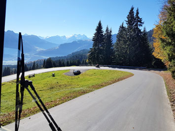 Nach dem Essen führte uns die Reise weiter nach Giswil und es folgte eine weitere Spezialität, der Glaubenbielenpass, besser bekannt als Panoramastrasse. Dieser wartet mit einer Besonderheit auf: Die Durchfahrt mit schweren Fahrzeugen ist nur zu bestimmten Zeiten gestattet. Pünktlich zu Beginn der Durchfahrtszeit setzten wir unsere Fahrt im Minutenabstand fort. Aufgrund des schönen Wetters war relativ viel Verkehr auf der Strasse unterwegs, sämtliche Begegnungen verliefen jedoch problemlos.